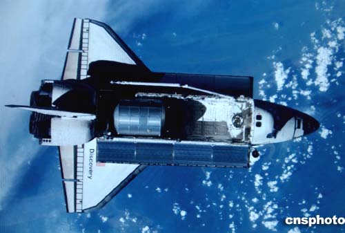 美國航天飛機“發現號”繼續在回家之路的軌道上遨游。(NASA)