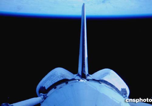 “發現號”漂亮的尾翼,在返航途中起著重要的減速作用。(NASA)