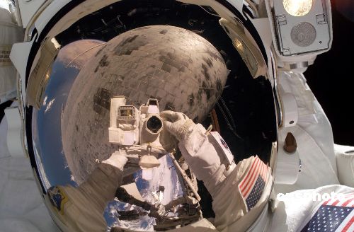 8月8日,由于不穩定的天氣狀況,“發現”號著陸嘗試被推遲24小時,8月9日將再次嘗試降落。共有六次著陸機會,兩次在肯尼迪航天中心,兩次在愛德華空軍基地,還有兩次在新墨西哥白沙。圖為北京時間8月3日16點48分,“發現”號宇航員開始了第三次太空行走。20時57分,宇航員羅賓遜成功地將“發現”號腹部兩處凸起的隔熱瓦縫隙填充材料順利清除。工作完成后,羅賓遜給自己拍攝了一張珍貴的照片。作者:Ic/cnsphoto