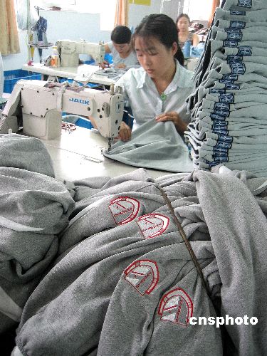 8月10日,歐盟委員會昨日表示,為避免給歐盟進(jìn)口商和零售商造成損失,歐盟將允許部分超出配額的中國產(chǎn)套衫和長褲這兩類紡織品進(jìn)入歐盟市場。歐盟貿(mào)易委員曼德爾森在一份聲明中表示,在今年7月11日前啟運(yùn)的中國套衫和長褲不管是否超出配額,都將被允許進(jìn)口。圖為寧波一企業(yè)正在加緊生產(chǎn)出口套衫和長褲。作者:張和平