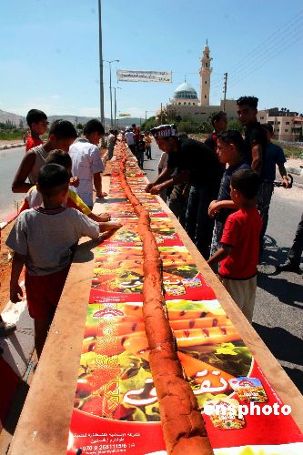 8月10日,在巴勒斯坦杰寧,廚師們正在制作一根長(zhǎng)750米的三明治,以圖打破吉尼斯世界紀(jì)錄。作者:Ic/cnsphoto