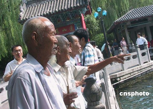 8月12日,為了慶祝抗戰勝利60周年,在山東省民政部門的組織下來自全省各地的十幾位老八路聚集濟南,暢游趵突泉美景。老戰友們六十年后重相聚,在一起觀看美麗的泉城風光,追憶過去抗戰的歲月,重游戰斗過的地方,個個心潮澎湃。作者:周青先