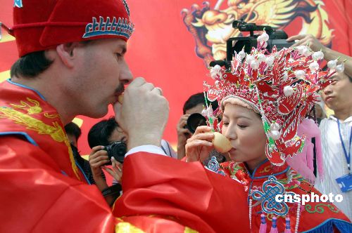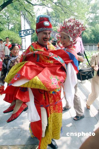 圖:老外大明湖體驗(yàn)傳統(tǒng)婚禮