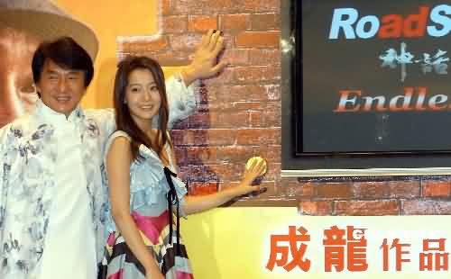 影星成龍、金喜善為電影《神話》主題曲首播按鈕(資料圖片)