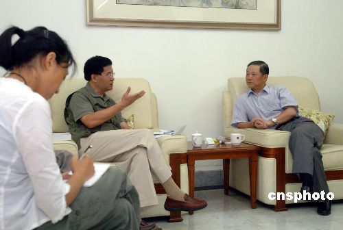 8月16日,中國駐印度特命全權大使孫玉璽[右]在大使館接受中新社記者專訪,談中印兩國雙邊關系和經貿合作等領域發展的新趨勢。作者:洪少葵