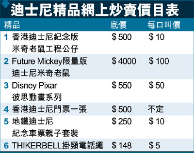 中新網(wǎng)8月17日電 據(jù)香港文匯報(bào)報(bào)道,“迪斯尼熱”席卷海峽兩岸,由16日起展開(kāi)的18場(chǎng)總彩排門票已在網(wǎng)上違法熱炒至每張500至千元還多(迪斯尼曾以195元公開(kāi)售票——本網(wǎng)注),有關(guān)香港迪斯尼的精品也“出價(jià)高,叫價(jià)好”。