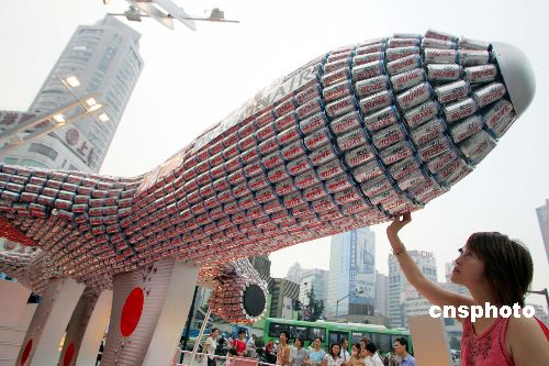 八月十六日,一架由數千罐“健怡可口可樂”組成的港龍航空A330飛機模型登陸上海港匯廣場,該飛機模型長八米、寬七點五米,完全按照真實的港龍A330飛機一比八比例打造,并由數十名能人巧匠花費十二天的時間,用“健怡可口可樂”易拉罐精心堆砌而成。這是可口可樂公司攜手港龍航空,首度合作推出今夏精彩紛呈的網上有獎競猜促銷活動,惟妙惟肖的造景飛機究竟用了多少罐“健怡可口可樂”搭建而成?作者:潘索菲