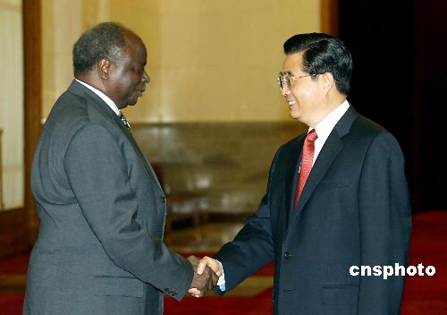 中新社北京八月十七日電(記者孫宇挺)中國國家主席胡錦濤今天下午在人民大會堂與肯尼亞總統齊貝吉舉行會談。雙方積極評價了兩國關系發展取得的成果,表示要共同努力,使中肯友好合作關系煥發出新的生機和活力。