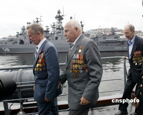 圖:中俄老戰(zhàn)士代表參觀太平洋艦隊(duì)基地艦艇