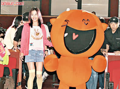 柏芝身穿超短牛仔裙襯鮮黃色魚網(wǎng)絲襪拖著基仔“兒子”Kubi入場(chǎng),引來全場(chǎng)起哄,她一上臺(tái)即表示:“我覺得基仔好似蒸餾水、沒雜質(zhì)、好乖,他是寧愿被人傷害都不會(huì)傷害別人 ……不過各位基仔歌迷請(qǐng)放心,我不會(huì)追求他!”主持Vani插嘴:“因?yàn)樗⑽牟缓茫俊?芝笑笑口說:“因?yàn)槲蚁矚g外國人!”