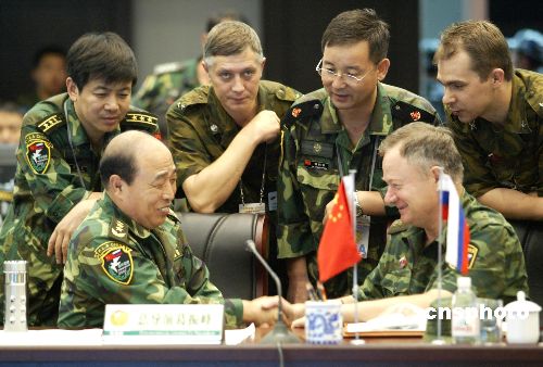8月20日上午,“和平使命——2005”中俄聯合軍事演習第二階段——戰役籌劃階段在中國青島開始。中俄軍事演習第二階段從二十日至二十二日,主要的課目是從戰役的層面做好戰役的協同工作。作者:王麗南