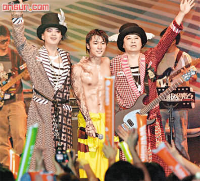 “新城唱好謝霆鋒×達明一派同場異夢音樂會”前晚在會展新翼舉行,三人穿上背上印有大麻的拳手長袍出場,明哥畫上紫色眼罩,阿達畫金色眼罩,霆鋒則在右頸至手掌畫上圖案,各自出位。