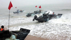 在膠東半島某兩棲訓(xùn)練場(chǎng),記者看到,空曠濕熱的海灘上,坦克轟鳴、戰(zhàn)車馳騁。海軍某陸戰(zhàn)旅兩棲裝甲團(tuán)的官兵在團(tuán)長(zhǎng)陳昌鋒的帶領(lǐng)下,正精神抖擻地在這里進(jìn)行一次次泛水、裝載科目訓(xùn)練。記者和登陸兵們一起戰(zhàn)酷暑、斗風(fēng)浪,充分感受到了官兵們“當(dāng)先鋒、打頭陣”的強(qiáng)烈使命意識(shí)和高漲訓(xùn)練熱情。