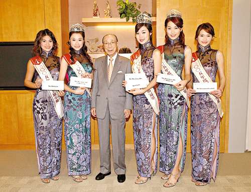 五位出爐港姐日日忙于四處領獎,昨午她們出現電視廣播城接受由電視廣播有限公司行政主席邵逸夫爵士頒發獎金。邵爵士與眾佳麗言笑晏晏,盡顯親切和藹一面。