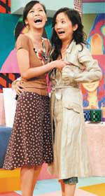 侯佩岑和天心日前錄影臺灣節(jié)目《桃色蛋白質》,在訪問陶晶瑩(陶子)時,佩岑竟突向陶子“胸襲”,令陶子愕然。
