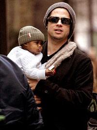 2006年,即將作爸爸的皮特,抱著茱莉的養女,幸福之情溢于言表。(人物雜志網圖)