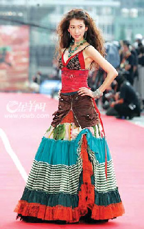 林志玲:波西米亞風情濃郁的裝扮,雖說是內衣外穿款,卻什么也沒露。(金羊網/圖;)