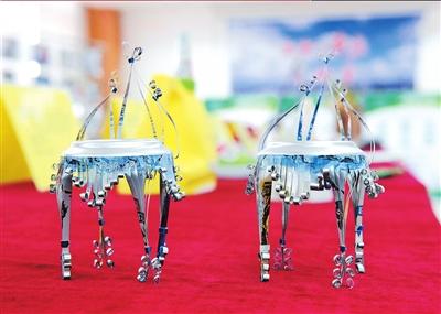 前天,居民展示用易拉罐制作的裝飾品。近日,經濟技術開發區居民原創低碳創意物品開始展出。承辦方大雄郁金香舍社區居委會工作人員介紹,此次活動是經濟技術開發區第5屆和諧社區文化節的一部分,希望通過此次活動鼓勵居民們低碳生活,在生活中變廢為寶,發明環保小物品。