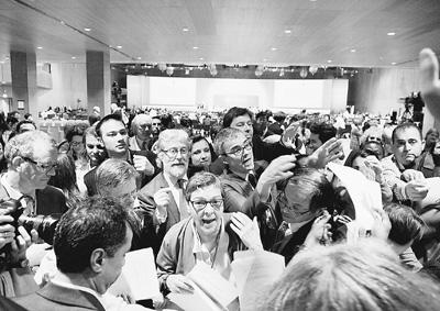 12月8日,在卡塔爾首都多哈,各國(guó)代表在多哈氣候大會(huì)“加時(shí)”階段的活動(dòng)中領(lǐng)取文件。