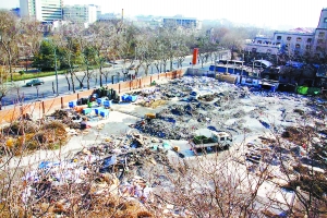 周先生說,昨天他路過這里時,看到這片空地有一扇大門敞開著,他近前看到約上千平方米的空地上,到處堆放著渣土、居民垃圾等雜亂物,“很難相信在市中心還有這樣的地方,這與王府井地區的繁華很不相稱。”周先生說。