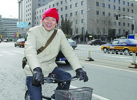 看記者正在拍照,讓他配合一下,他咧嘴笑了,然后騎上車離開了。離開前,記者說(shuō),您出行很環(huán)保啊!他開玩笑說(shuō),就算低碳一次吧。(記者 郭靜)
