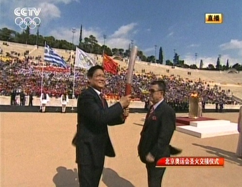 希臘奧委會主席基里亞庫和北京奧組委主席劉淇前往講臺,基里亞庫用希臘文致辭,劉淇則用中文致辭,歡迎希臘以及全世界的人們到北京觀看奧運會。