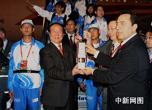 中新網4月3日電 當地時間4月3日凌晨0時(北京時間3日凌晨5時)許,載有北京奧運圣火的“奧運圣火”號專機抵達土耳其最大城市伊斯坦布爾的國際機場。飛機降落約10分鐘后,北京奧組委執行副主席蔣效愚手持圣火燈走下舷梯,宣布北京奧運圣火正式進入歐亞匯合點伊斯坦布爾。
