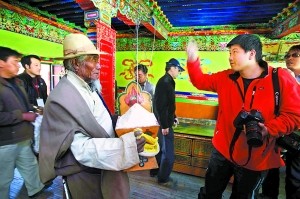 遇到牦牛耕地,外國記者顯得最感興趣,攝像機、攝影機、照相機左拍右拍。給木訥的藏民提問,更是他們的熱衷。一位外國同行問一位拉孜縣的中年藏族村民:“你是中國人,還是西藏人?”