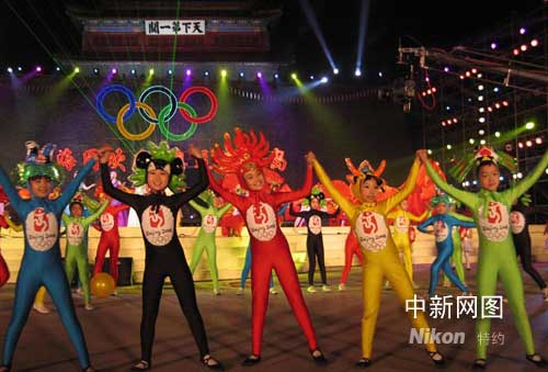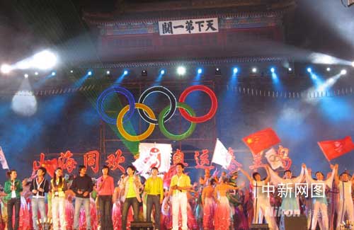 中新網(wǎng)4月29日電 “山海同歡慶·奧運(yùn)秦皇島”迎奧運(yùn)倒計(jì)時(shí)一百天大型慶祝活動(dòng)二十九日晚在“天下第一關(guān)”山海關(guān)廣場舉行。今晚的整臺(tái)晚會(huì)節(jié)目精彩紛呈,觀眾揮舞旗幟,陣陣歡呼喝彩不斷。號(hào)稱“天下第一關(guān)”的山海關(guān)變成歌和舞的海洋。秦皇島各界迎接奧運(yùn)盛會(huì)的喜悅與豪情盡展無余。