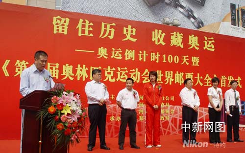 中新網鄭州四月三十日電(朱曉娟 孫嵐 王彥軍 王奇)值此北京奧運會倒計時一百天之際,由國際奧委會、北京奧組委聯合授權,中國集郵總公司獨家發行的《第二十九屆奧林匹克運動會世界郵票大全》今日在鄭州舉行首發式,跆拳道奧運冠軍陳中、跆拳道世界冠軍賀璐敏等出席。