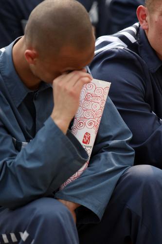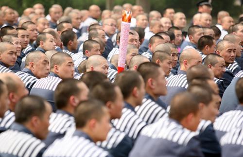 2008年5月6日,北京某監獄,由服刑人員自制的祥云火炬在各監區傳遞。“國內火炬傳遞儀式”上,當圣火經過地圖上的家鄉時,親切的旋律及關于家鄉風土人情的介紹旋即傳到在場每位服刑人員耳畔,不少人流下思鄉悔過的淚水。