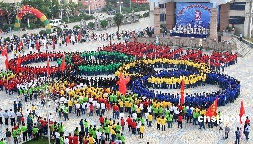 5月16日,地處偏僻山區(qū)的江西德興銅礦2008名礦山職工參加“全民健身與奧運同行”活動,以健步行、編五環(huán)等形式,傳遞奧運精神,支持北京奧運會,表達礦工喜迎奧運的心情。 中新社發(fā) 胡敦煌 攝