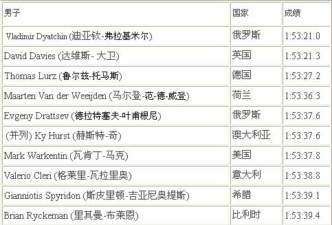 10名提前獲得奧運(yùn)資格的男子選手。