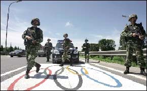 據介紹,屆時把奧運專用道劃分為39個執勤區域,實行全天24小時上路執勤,人歇車不停,實行每輛武裝處突車為一個小組,負責一段路線的方法,對奧運專用通道實行封控。同時各組還將把奧運專用通道周邊的場館、醫院、賓館作為重點控制對象,發揮處突車輛機動、靈活的特點,確保奧運會期間首都地區的絕對安全。