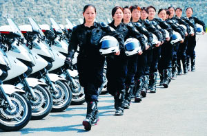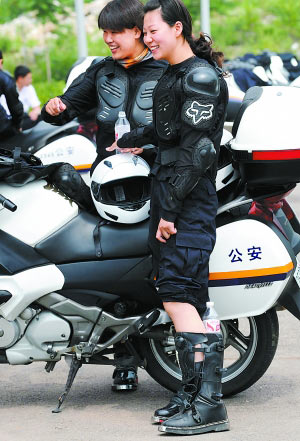 就是在這種情況下,從五月至今,魔鬼訓練終于有了收獲,“警花”們駕駛技能提高程度之快,令男隊員們也刮目相看。如今,她們一樣能夠熟練地駕駛摩托車,編隊行進,自如穿樁,應對路面各種復雜狀況。女警們告訴記者,現在她們已經差不多達到了“人車合一”的境界。男女隊在“緊急制動”科目的一次挑戰賽中,居然是女隊“完勝”——估計前提是男隊員謙讓了一點。