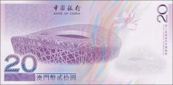 北京2008年奧運(yùn)會(huì)澳門(mén)幣紀(jì)念鈔票背面。