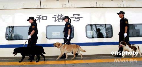 7月14日,沈陽(yáng)鐵路公安處警犬基地的3只搜爆犬正式投入沈鐵公安的奧運(yùn)安保工作中。據(jù)了解沈陽(yáng)鐵路公安處警犬基地共有37只警犬,其中大部分為德國(guó)牧羊犬,承擔(dān)著巡線護(hù)線任務(wù),這次投入搜爆、安檢工作的主要為史賓格、拉布拉多等犬種,它們將在奧運(yùn)安保期間負(fù)責(zé)站臺(tái)、貴賓室等重要地點(diǎn)的安檢及搜爆工作,以確保鐵路的安全。中新社發(fā) 趙敬東 攝