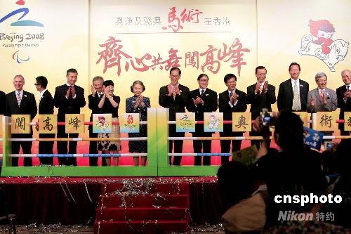 第二十九屆奧運會馬術(shù)比賽(香港)有限公司,七月十五日在香港會展中心舉辦“北京2008年奧運及殘奧馬術(shù)比賽誓師大會”。特區(qū)民政事務局局長曾德成、馬術(shù)比賽(香港)有限公司行政總裁林煥光、港體育協(xié)暨奧委會會長霍震霆以及各合作伙伴代表出席誓師儀式 ,表達同心協(xié)力辦好北京奧運及殘奧馬術(shù)比賽的決心。中新社發(fā) 張勤 攝