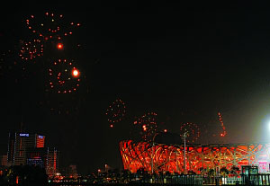 組圖:“鳥巢”試放煙花現(xiàn)場(chǎng):“五環(huán)”盛放夜空(2)