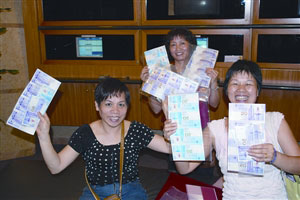 圖:澳門市民鈔票在手,笑逐顏開。(圖片來源:澳門日?qǐng)?bào))