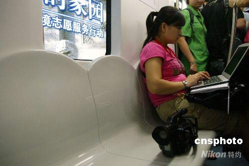 據地鐵工作人員介紹,地鐵10號線新車的座椅靠背升高了15到20厘米,而且是圓弧形的,乘客乘坐起來將更加舒適。中新社發 富田 攝