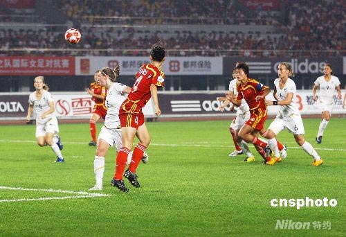 7月20日晚,中國(guó)女足在秦皇島奧體中心與新西蘭進(jìn)行一場(chǎng)熱身賽,這也是中國(guó)女足奧運(yùn)會(huì)之前最后一次公開(kāi)比賽,韓端在開(kāi)場(chǎng)第四分鐘就頭球破門(mén)建功,最終中國(guó)隊(duì)1:0小勝新西蘭隊(duì)。 中新社發(fā) 劉新 攝