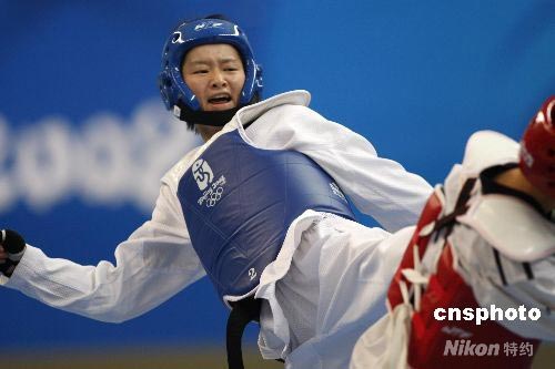 被稱為“輕型轟炸機”的女子49公斤級選手吳靜鈺在此次模擬賽上攻勢凌厲,將向中國女跆首枚小級別金牌展開沖擊。 中新社發 杜洋 攝