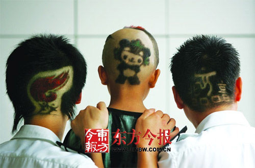昨日,鄭州市紅專路,三名男孩的奧運發型格外搶眼。