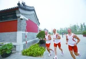 昨日,3名波蘭運動員在北京奧運村內跑步。當天上午,北京奧運村正式開村。