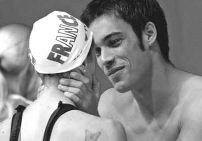但當時T恤上的名字,并不是“馬林”,“花樣美男”馬林只是馬諾杜在雅典奧運會后的第三任男友。但兩人一來電,便是火花四濺。2007年春的墨爾本世錦賽,馬諾杜勇奪200米、400米自由泳冠軍,不及上岸她便在泳池中打出愛的“心”型手勢,也不避諱在媒體面前和馬林甜蜜擁吻。那一刻,他們眼中只有對方,馬諾杜的“LOVE”文身專為馬林而刺。她的名言是:“我談戀愛的時候,就會游得比較好。”