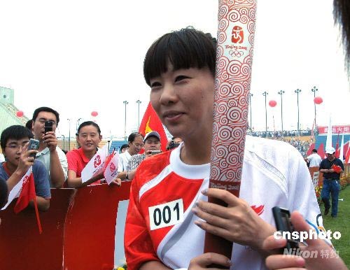 7月31日,奧運(yùn)火炬“祥云”如約與七百余萬(wàn)唐山民眾見面,在這座古老美麗、浴火重生的鳳凰城傳遞和平、友誼、和諧與希望。上午8時(shí),起跑儀式在唐山市體育中心舉行。圖為奧運(yùn)游泳冠軍錢紅作為首棒火炬手,開始奧運(yùn)火炬在河北省最后一站唐山的傳遞。中新社發(fā) 牛琳 攝