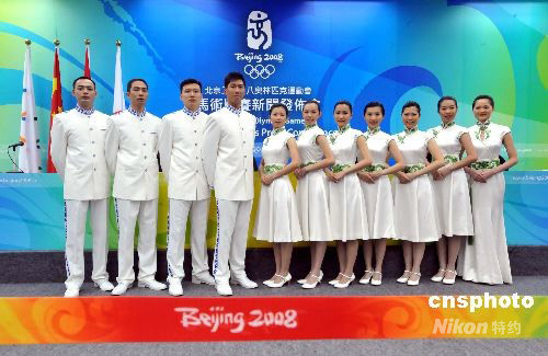 八月二日,奧運馬術公司邀請媒體到香港沙田奧運馬術比賽場地的媒體中心,向傳媒介紹由擔任奧運馬術的七位禮儀小姐及四位升旗手。 中新社發 鄧慶樂 攝