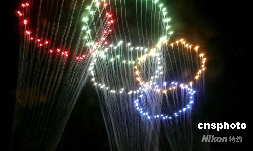 圖:北京天安門(mén)廣場(chǎng)首次試放“五環(huán)”禮花