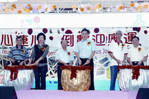 圖:嘉賓用鼓聲迎接北京奧運會即將來臨。(圖片來源:澳門日報)